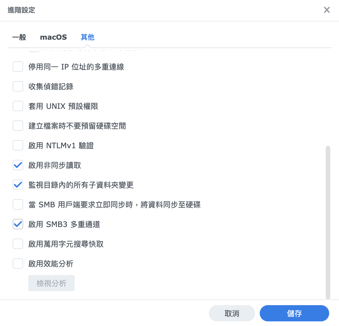 勾選 「啟動 SMB3 多重通道」 並套用。